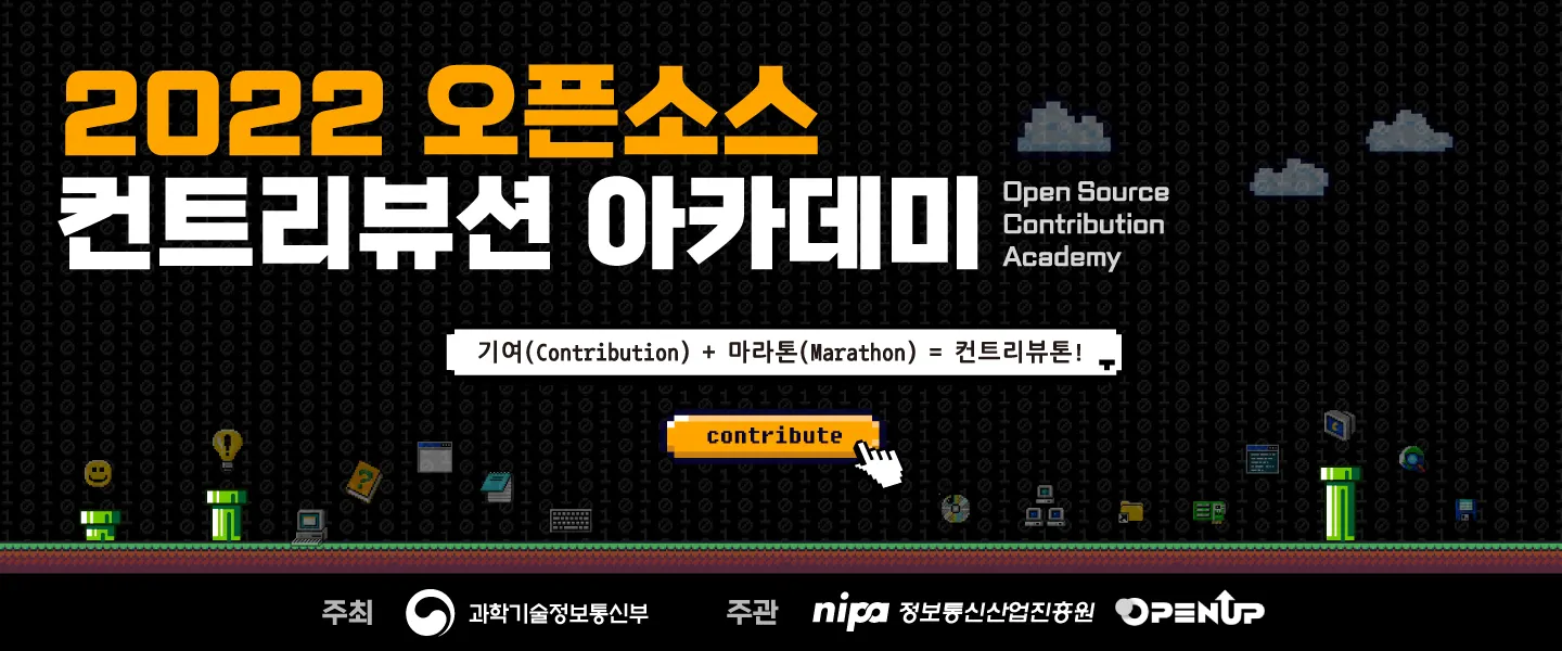 2016년부터 개최된 연례 행사이며, 올해 제 7회차를 맞아 다시 한번 선배 개발자와 후배 개발자가 함께 컨트리뷰션 하는 멋진 행사가 개최됩니다. 오픈소스 컨트리뷰션 아카데미에 참가하는 모든 멘티와 멘토는 Open UP에서 자유롭게 코딩할 수 있고 올해부터는 각 팀의 멘토에게 ‘청년 SW개발자 멘토링’도 받아볼 수 있는 좋은 프로그램이 마련되어 있습니다.