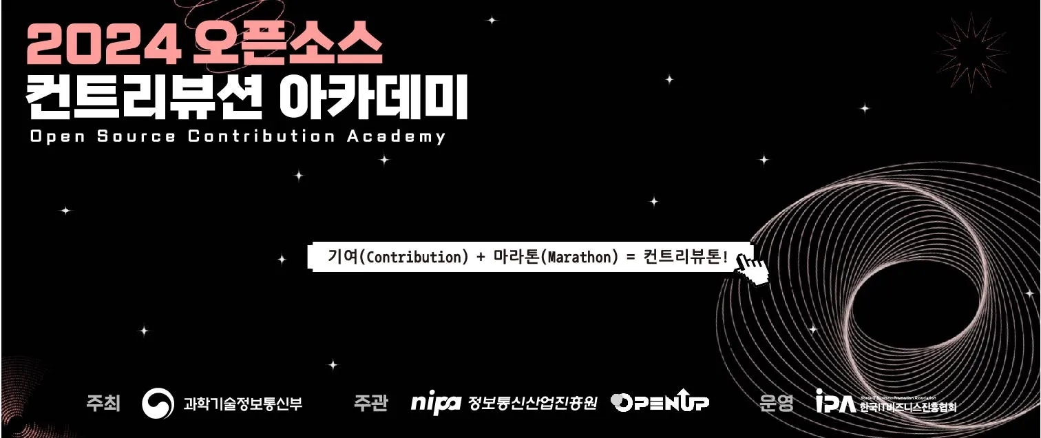 2016년부터 개최된 연례 행사이며, 2024년 제 9회차를 맞아 다시 한번 선배 개발자와 후배 개발자가 함께 컨트리뷰션 하는 멋진 행사가 개최됩니다. 오픈소스 컨트리뷰션 아카데미에 참가하는 모든 멘티와 멘토는 오픈소스SW통합지원센터 Open UP에서 자유롭게 코딩할 수 있습니다.